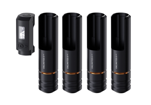 Die größte Neuerung ist natürlich, dass wir die Unlimited II mit einem OLED-Display ausgestattet haben, um dir mehr Kontrolle und einen besseren Überblick über die Einstellungen zu geben. Es bietet einen klaren Überblick über die Frequenz, den aktuellen Modus und den Batteriestand, sodass du Anpassungen direkt vornehmen kannst. Zusammen mit dem Display kommt das innovative Schiebekonzept, mit dem die Akkus im Handumdrehen ausgetauscht werden können. Schiebe die Steuereinheit einfach nach oben und wechsle den Akku in nur zwei Klicks.