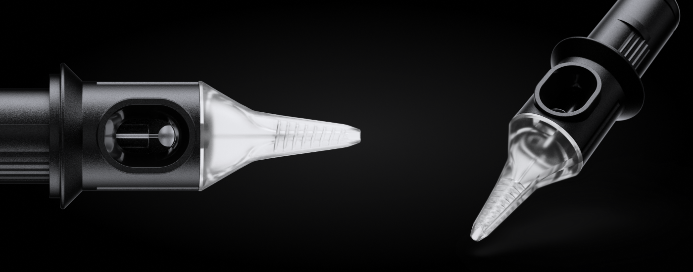 This new cartridge design not only ensures unparalleled ink flow, but also guarantees tight needle guidance, resulting in a very high degree of precision. In combination, this has never existed before. The special thing is that this precision is maintained when tattooing with liners in all directions. In plain language, this means that you could rotate your tattoo machine completely around its own axis while drawing lines, without suffering any loss in line quality.