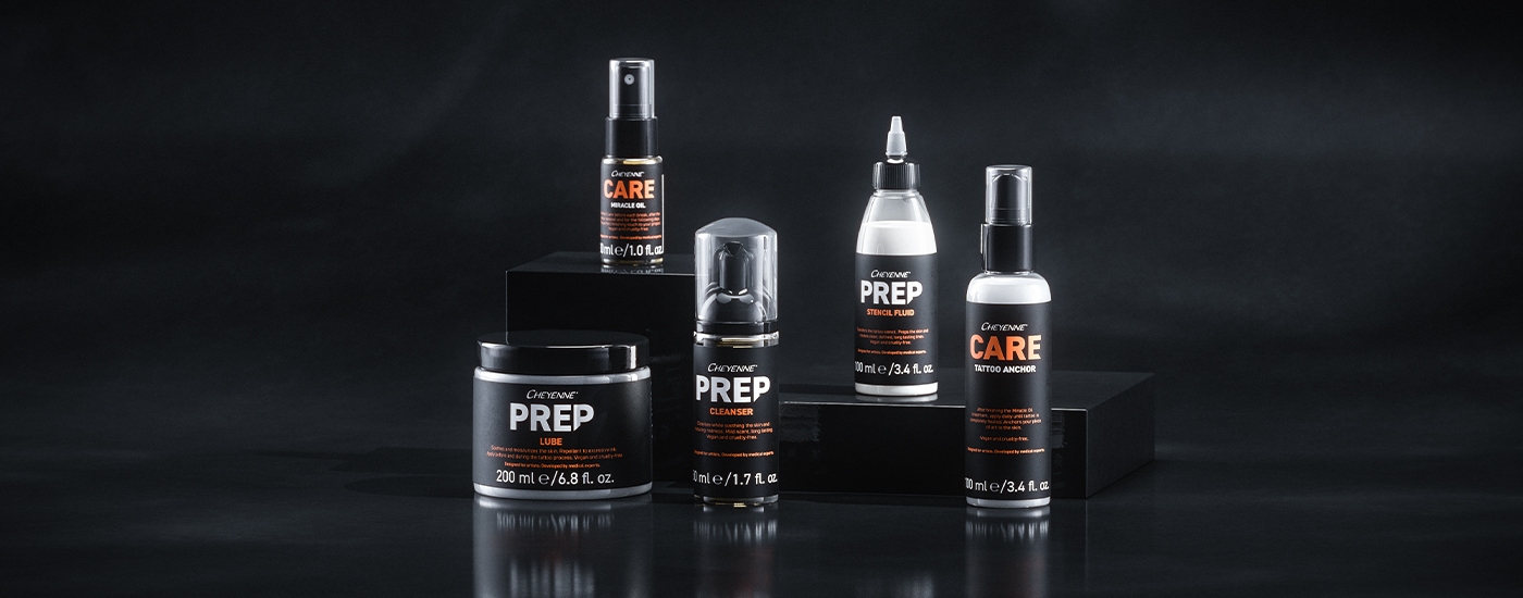 Prep & Care is the result of our research – a perfectly coordinated tattoo skincare range that addresses healing the skin right from the start, even while the skin is being tattooed. The innovative formula can considerably shorten the healing phase by reducing itching and scabbing, preventing inflammation and allergic reactions, and accelerating wound healing.