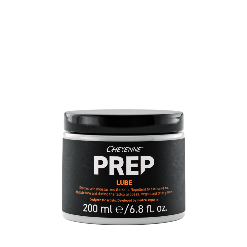 We have improved good old Vaseline and, in Prep Lube, developed a kind of “Tattoo Vaseline” that quite naturally allows the tattoo needles and gloves to glide, while also combating bacteria, inflammation and irritation thanks to its ingredients.