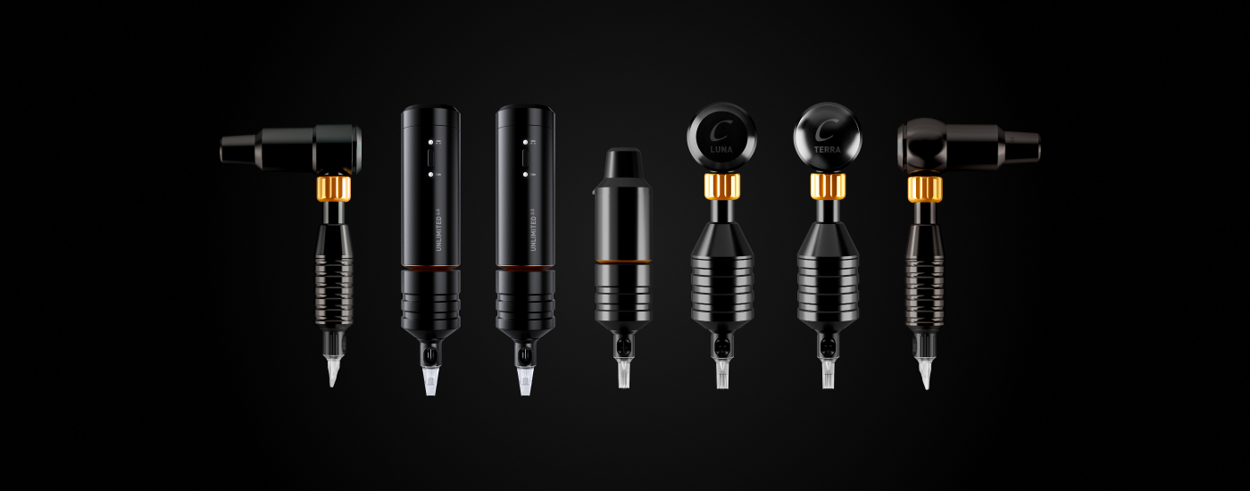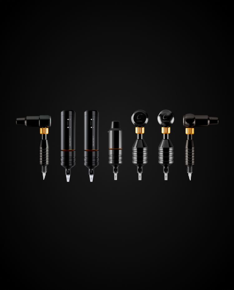 Sin olvidarnos de la herramienta adecuada. Para generar el movimiento de la aguja de tatuaje, ha habido y hay distintos conceptos de sistema. La historia del tatuaje se remonta desde la aguja manual y las herramientas de impacto hasta las máquinas rotativas modernas con motor, pasando por las máquinas eléctricas de bobina. Hoy en día, las populares máquinas rotativas son indispensables en un estudio de tatuaje. Y Cheyenne, como impulsora tecnológica, también ha sido precursora desde el inicio.