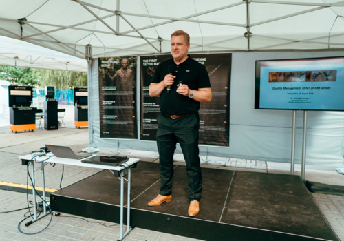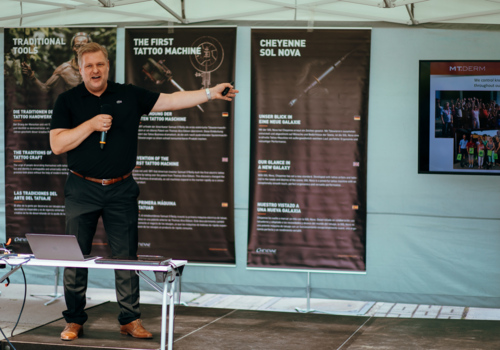 Durante as palestras falámos sobre os temas do cenário da tatuagem que significam muito para nós - garantia de qualidade, regulamentos da UE e higiene da tatuagem. O Dr. Andreas Pachten deu aos convidados uma breve introdução ao tema "Gestão da qualidade na MT.DERM GmbH". Depois disso, o Professor Serup compartilhou idéias interessantes sobre as inovações do Congresso Europeu de Pesquisa de Tatuagens e Pigmentos. Nosso destaque pessoal foi a palestra do artista Cheyenne Jens Bergström, que está ativamente envolvido na padronização da higiene das tatuagens na Suécia. Ele falou sobre os regulamentos gerais de higiene para tatuadores na União Europeia.