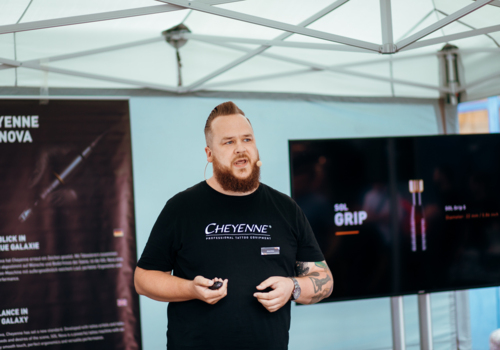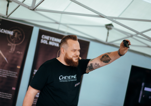 Mas não é tudo! A Cheyenne está actualmente a desenvolver um produto que irá revolucionar a indústria da tatuagem. No Factory Day apresentámos o SOL Nova Unlimited pela primeira vez. Esta caneta alimentada por bateria tem uma unidade de energia integrada e uma bateria com um tempo máximo de funcionamento de 5 horas. A frequência é ajustada através do sensor do rolamento - não são necessários cabos para operar a máquina. Você está curioso? Fique atento, vamos mantê-lo atualizado sobre o desenvolvimento da caneta bateria.