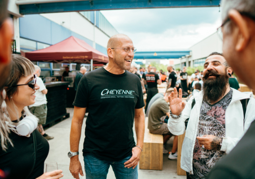 Pela segunda vez, a sede da Cheyenne em Berlim abriu as suas portas aos seus distribuidores, parceiros e artistas. Neste dia, eles puderam experimentar a produção de equipamentos de tatuagem passo a passo. Mas este ano quisemos apoiar a intercomunicação entre a Cheyenne e os nossos parceiros, pelo que oferecemos aos visitantes um programa variado.
