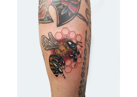 - Devo comparar esta pen às outras máquinas da Cheyenne, eu a descreveria como uma combinação do temperamental Thunder e do manso Spirit. Ela combina o melhor das duas máquinas, é maravilhosa e precisa quando se trata de linhas, mas quando voc^e vai mais de vagar pode fazer a mais suave das sombras, assim como a Hawk Spirit. A maneira como foi projetado, sendo capaz de segurá-la como um lápis, me atrai muito, já que é muito fácil girar e girar sem que o motor atrapalhe seus movimentos. No primeiro semestre do meu aprendizado, usei uma máquina de bobina da marca Soba Workhorse. Charly havia me dado isso, pois achava que todos deveriam saber a sensação de trabalhar com uma máquina que exigia que você conhecesse as habilidades básicas e como tudo começou. Mas no momento Charly já era um tatuador experiente com as máquinas Cheyenne, e teve um tempo precioso mostrando-me todos os truques que você poderia fazer com a Cheyenne quando eu ainda estava usando bobinas. Então ele colocou uma Cheyenne Thunder na minha mão, e foi quando tudo decolou. Como tatuador, você pode gastar muito tempo procurando aquela máquina perfeita que realmente combina com a sua maneira de trabalhar, mas a Hawk pen me tirou do sério e, neste momento, é a favorita de todos os tempos.