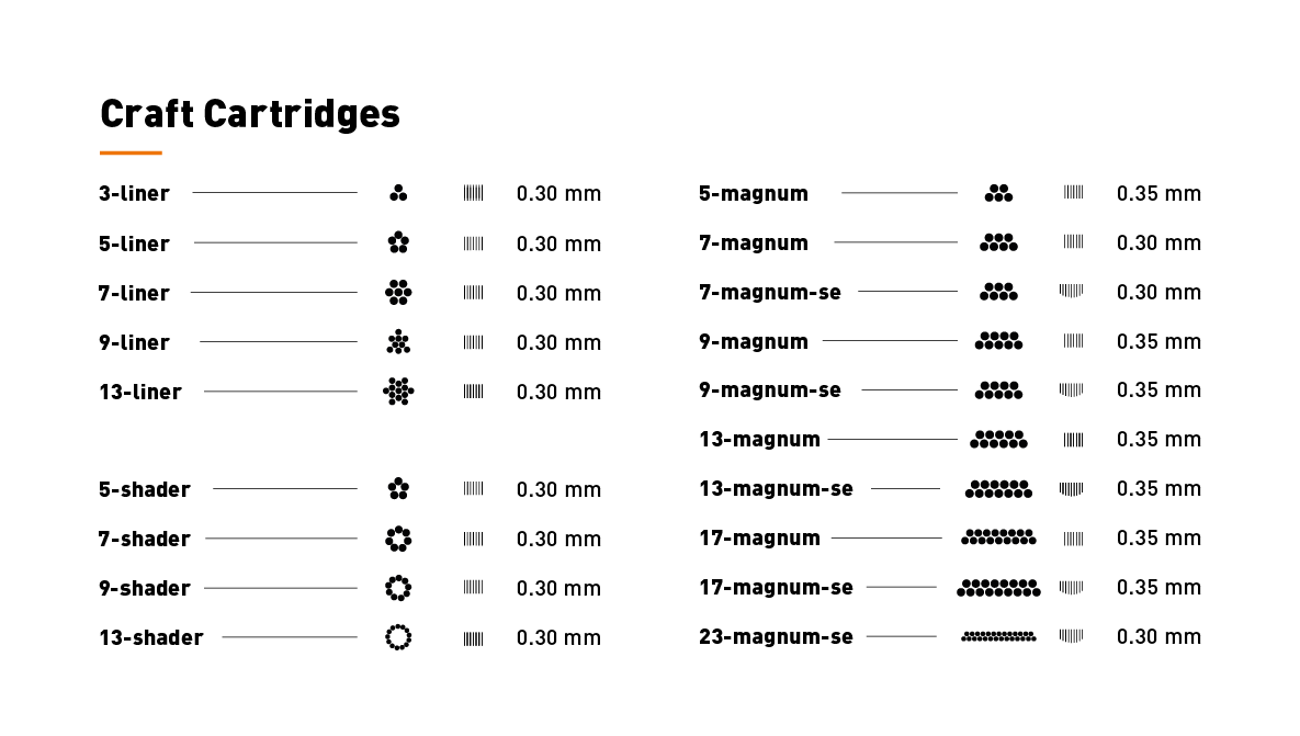 Craft Cartridges - As práticas agulhas de tatuagem nas configurações mais populares